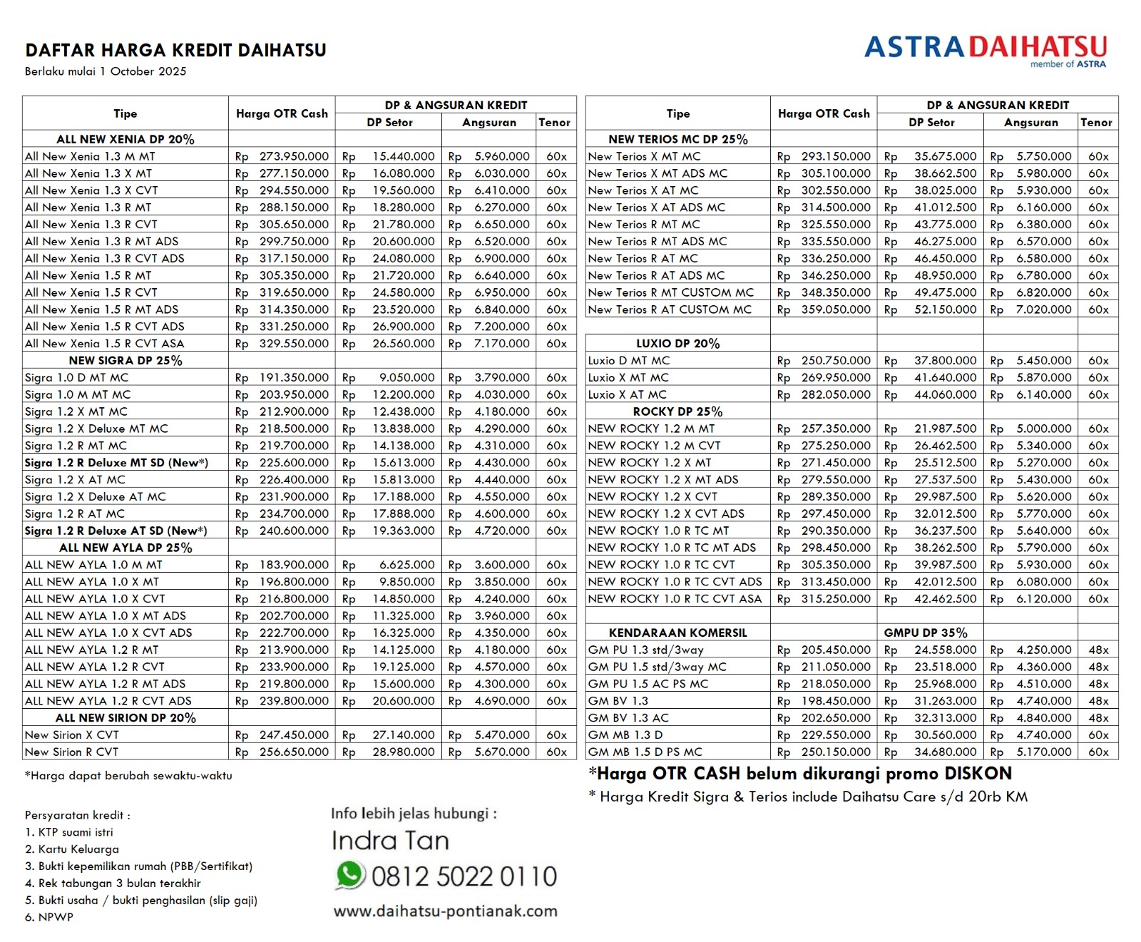 TABEL HARGA KREDIT PRODUK DAIHATSU PONTIANAK